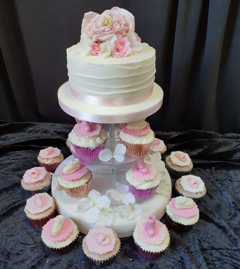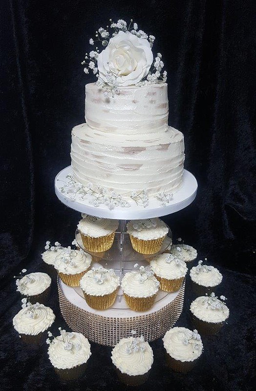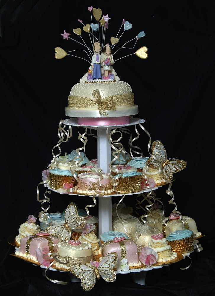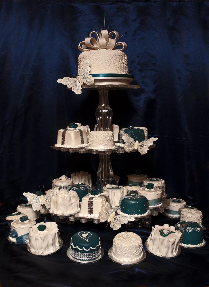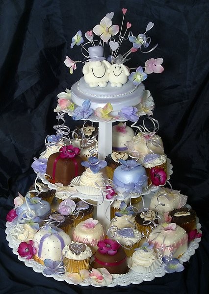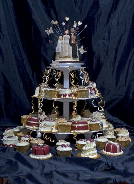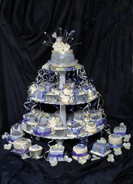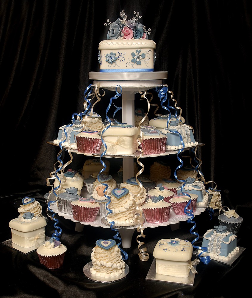 A multitude of mini-cake towers and cupcakes for wedding. Prices from £364.