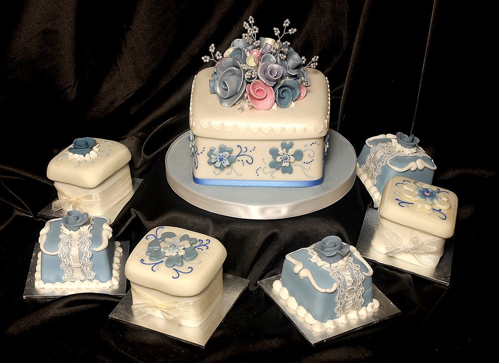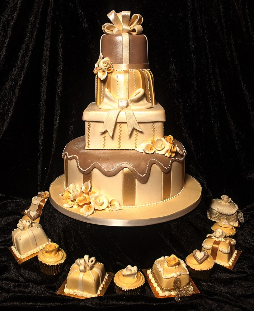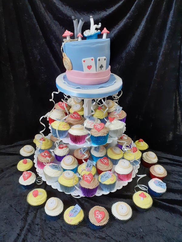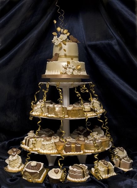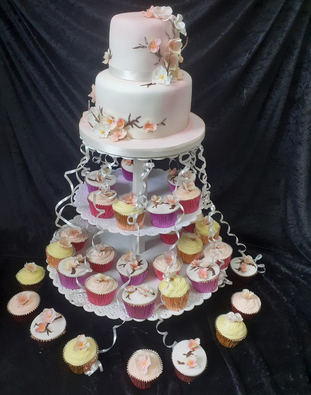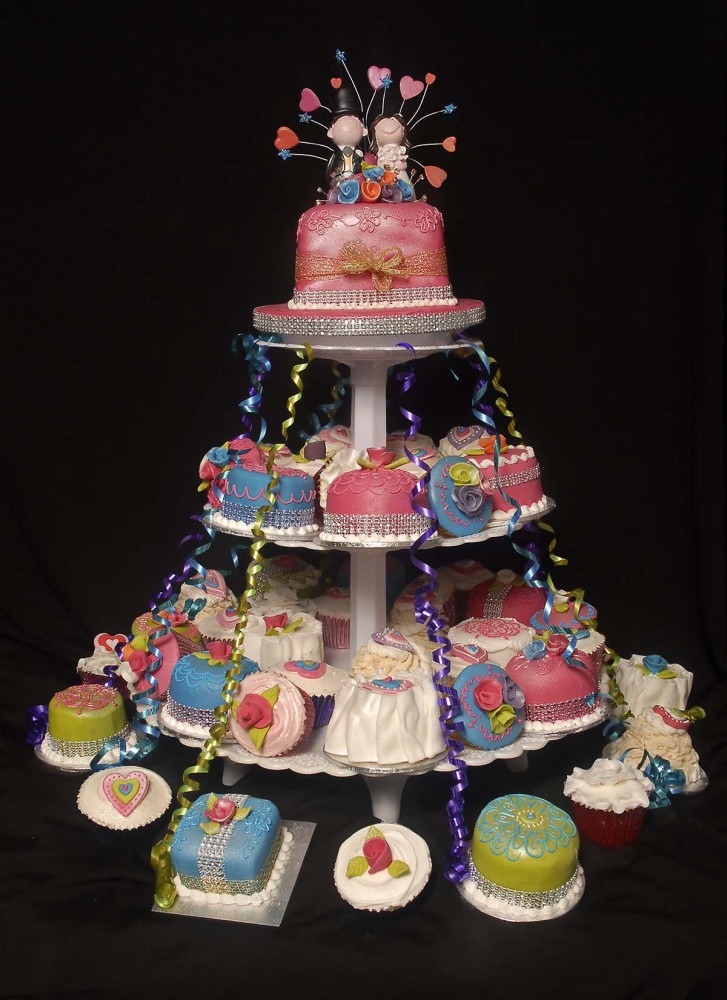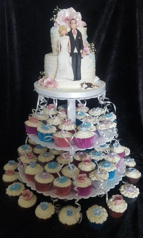 A multitude of mini-cake towers and cupcakes for wedding. Prices from £364.